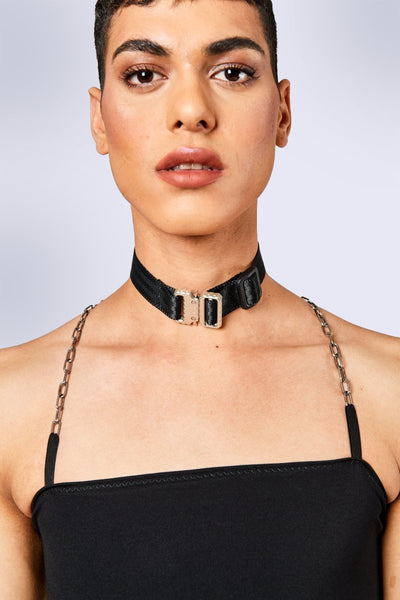 Schwarzes Band & silbernes Metall der AIR-1 um den Hals. Passend zu Ihrem Outfit. Wochenende. Tanzfläche. Rabiat.