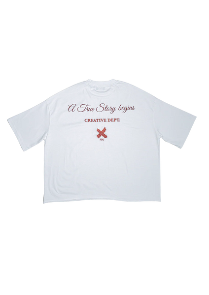 True Story-Boxy Embroidery T-Shirt von FDL CLOTHING in weiß