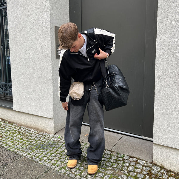 Cropped Trainingsjacke von 4THD in schwarz mit weißen Akzenten