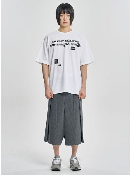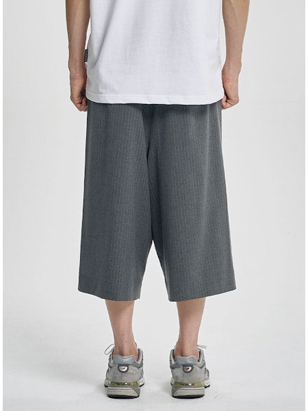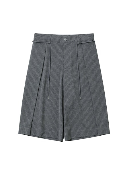 One Tuck Stripe Bermuda Pants Grey
