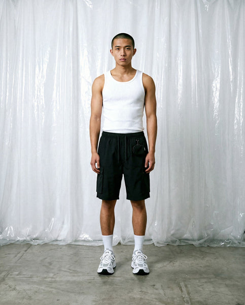 - 100% polyester- Two side pockets + side pockets- Detachable small bag for ear plugs- Elastic waistband- Unisex fit
