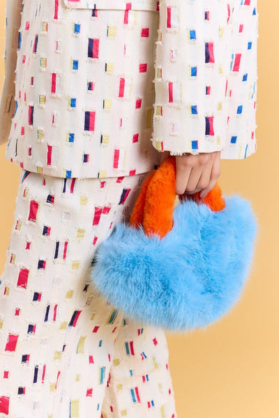 Werten Sie Ihre Accessoires mit dieser stilvollen Tasche aus Kunstfell auf, die alle Blicke auf sich ziehen wird. Mit einem weichen Kunstlederfutter und einem farbenfrohen Riemen kombiniert dieses Stück Komfort mit kühnem Flair. Der Magnetverschluss hält Ihre wichtigsten Dinge sicher und bietet gleichzeitig einfachen Zugriff unterwegs. Perfekt, um jedem Outfit Struktur und Persönlichkeit zu verleihen.